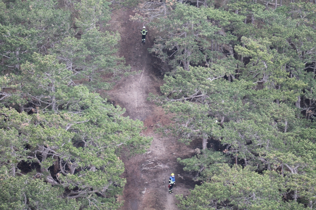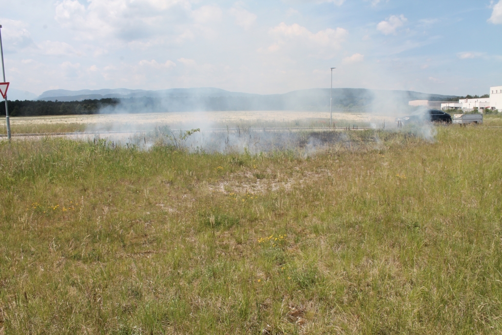 Beachten Sie, dass Wiesen, Sträucher und Wälder oft mehr Wasser benötigen, als zur Verfügung steht, um wirklich im „Saft“ zu stehen. So führen längere Trockenperioden, die von kleineren Schauern unterbrochen werden, nicht zur entsprechenden Feuchtigkeit, die notwendig wäre, um eine Flächenbrandgefahr zu minimieren. Tatsächlich sieht man gut, wenn man die obere leicht feuchte Schicht der Erde nach einem Regenguss entfernt, dass nach einem Zentimeter das Erdreich oft immer noch staubtrocken ist. „Das ist ein Zeichen dafür, wie es um den Boden und die Pflanzen steht. Ist der Boden staubtrocken, dann besteht Brandgefahr bei der kleinsten Flamme“, erklärt Kommandant Christian Pfeiffer.
