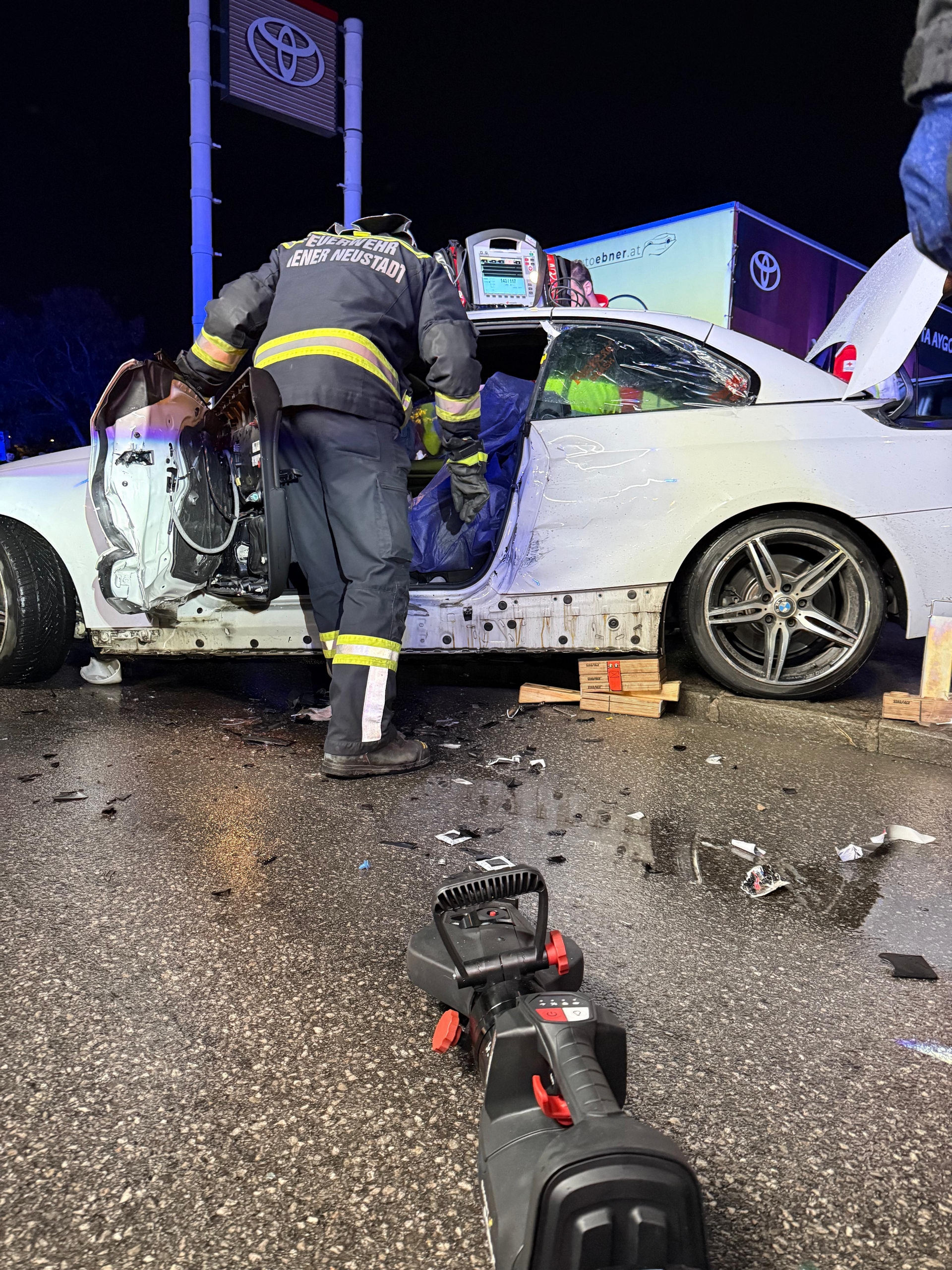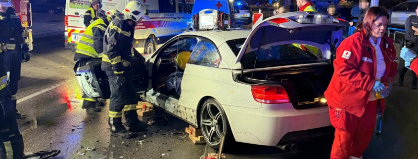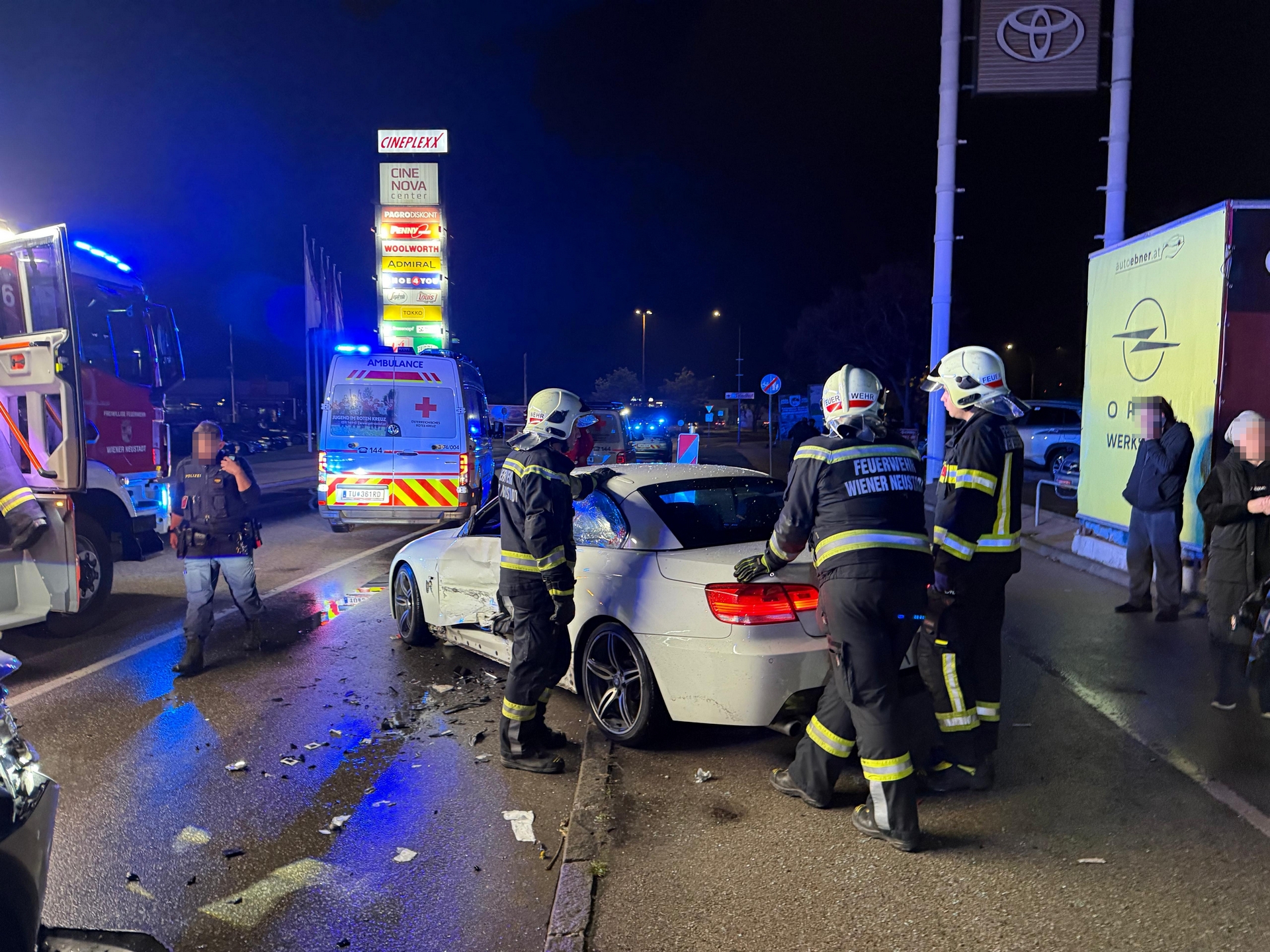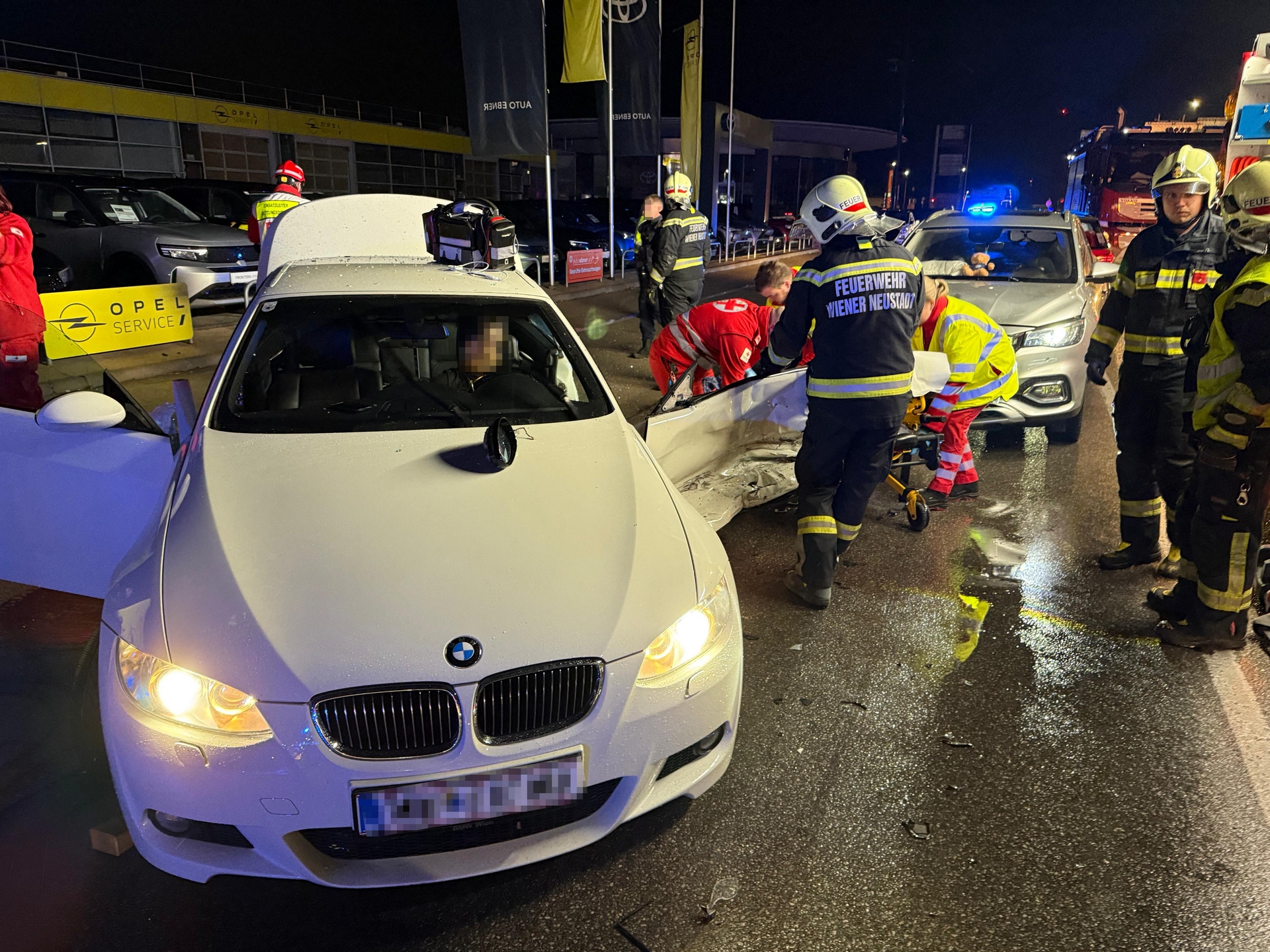 Am Sonntagabend, 09.11.2025, ereignete sich auf der Wiener Neustädter Stadionstraße ein schwerer Verkehrsunfall. Einer der Lenker musste aus dem verformten Fahrzeug geschnitten werden. Drei Personen wurden unbestimmten Grades verletzt.