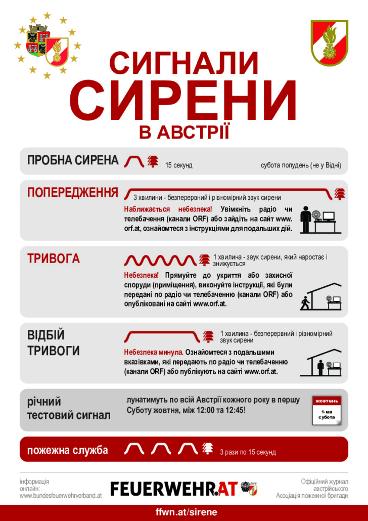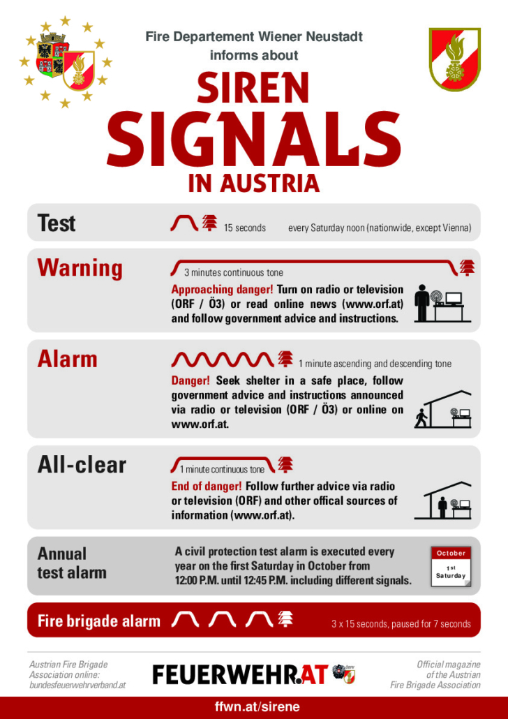 Der Zivilschutzalarm wird durch die Bezirksalarm- und -warnzentrale am Babenbergerring ausgelöst. Jeden ersten Samstag im Oktober werden alle drei Zivilschutzalarmsignale getestet.
