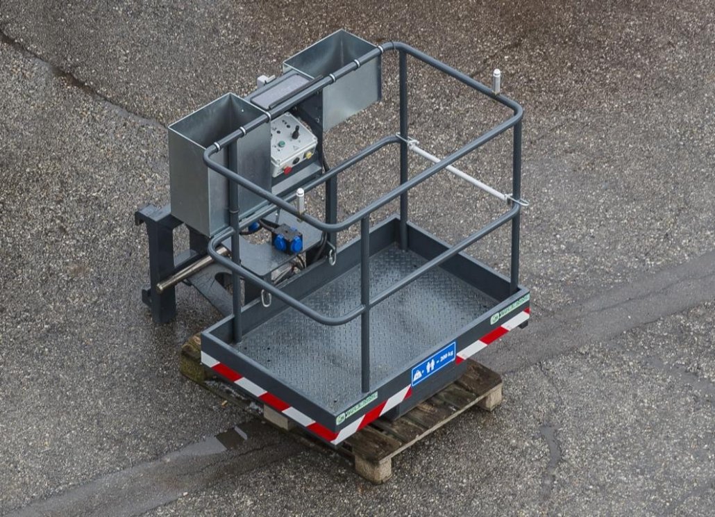 Mit einer Breite von 1.200 mm können im Korb zwei Personen bzw. 200 kg aufgenommen werden. Steuerung vom Korb aus möglich.