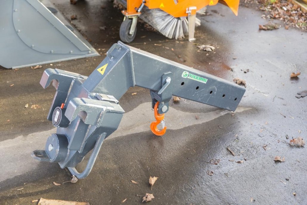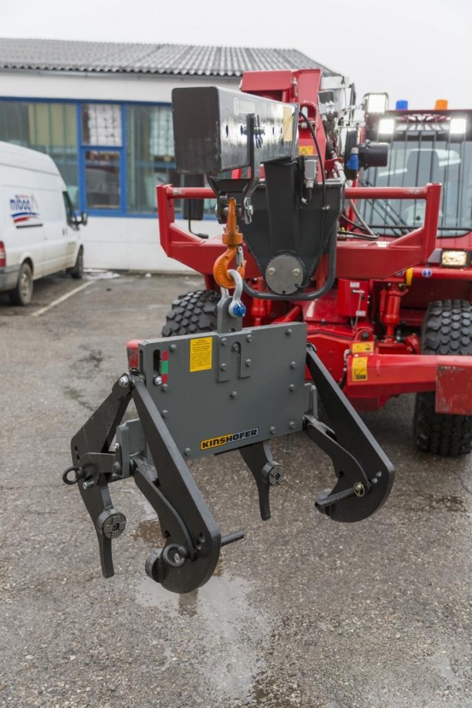 Der Lastbalken verwandelt den Teleskoblader in einen Kran um zum Beispiel Betonleitwände versetzen zu können.