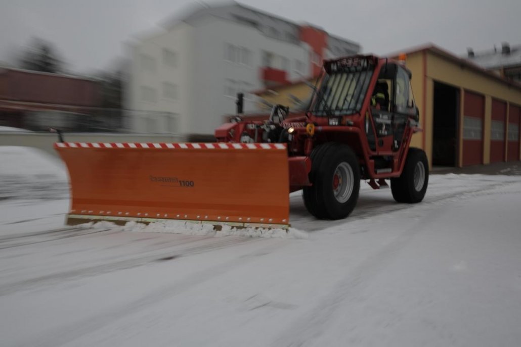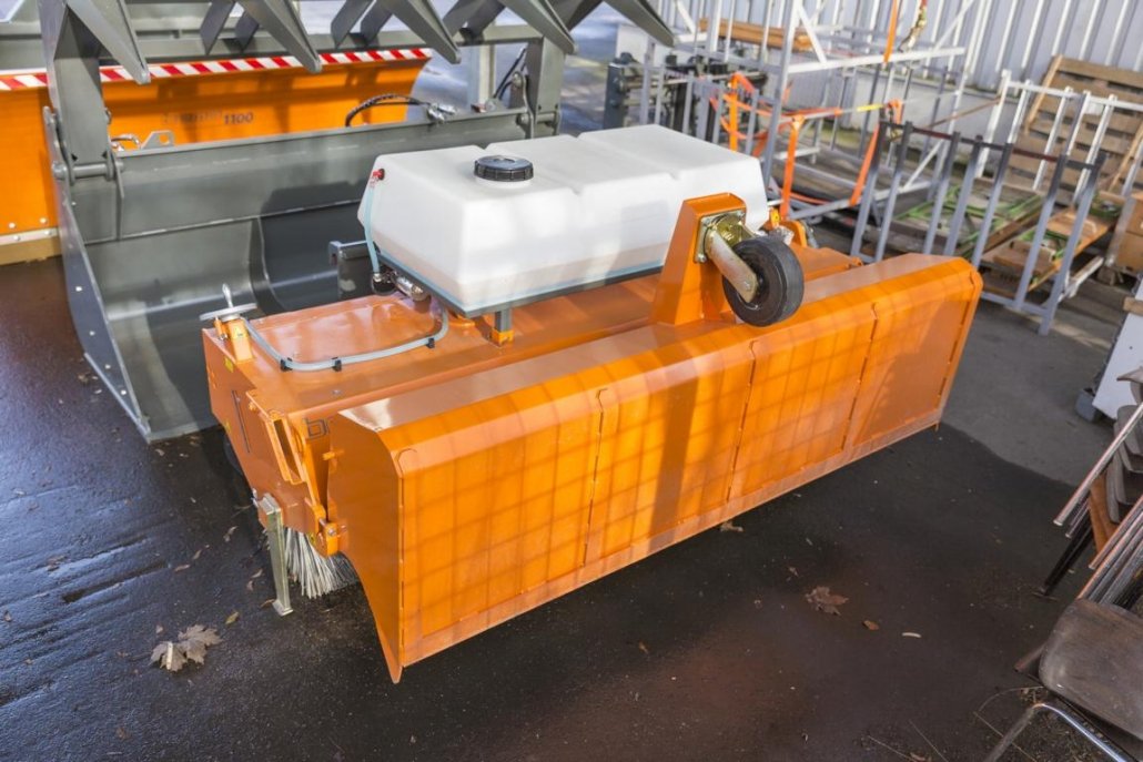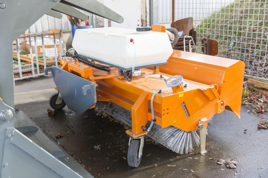 Mit dieser Sonderausrüstung wird bei Bedarf im Katastropheneinsatz der Teleskoplader zur Kehrmaschine.